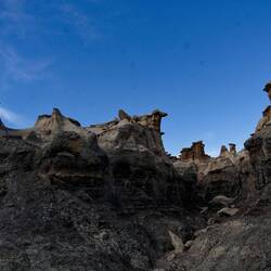 Am nächsten Morgen fahren wir weiter zu den Aztec Ruins. Die heißen so, weil die ersten spanischen Eroberer alle Indigenen als Azteken bezeichnet haben, Azteken waren hier aber nie. Die Ruinen sind ähnlich wie in Pecos und Bandelier vorgestern, nur größer. Wieder ist das Ganze als Rundweg organisiert, mit Broschüre und entsprechenden Nummern. Diesmal bekommen wir sogar eine deutsche Broschüre, echt komfortabel. Nach etwa der Hälfte des Weges treffen wir auf Thomas, den wir vor einer Woche am Rattlesnake Park nahe den Guadalupe Mountains kennengelernt hatten. Wir sprechen ihn an und er freut sich, uns wieder zu treffen, wir machen den weiteren Rundgang zusammen und unterhalten uns lange miteinander. Er gibt uns noch einige Empfehlungen mit, dann fahren wir weiter. Heute müssen wir mal wieder einkaufen und unsere Bestände auffüllen. Vor dem üblichen Supermarkt habe ich einen spanischen Metzger ausfindig gemacht, der sehr gut sein soll. Wir halten an und tatsächlich, das ist ein echt gutes Angebot, eine vorzügliche Metzgertheke, aber auch viele andere mexikanischen Lebensmittel. Neben hervorragendem Fleisch gibt es auch ausgezeichnete Brötchen und Nachos, echt lecker. Dann noch der Supermarkt, ich muss Holzleim besorgen, weil die Rüttelpisten eine unserer Schranktüren gelockert haben; nicht nur die Schrauben, auch die Verankerung ist ausgeleiert, da muß ich ran. Weiter geht es in die Bisti Badlands, unserem heutigen Ziel. Kaum sind wir aus dem Städtchen raus, sehen wir, daß dort Autos an der Straße anhalten. Claudia fährt langsam und wir sehen, dass dort Kartoffeln auf der Straße liegen, anscheinend hat die der Wind vom Lastwagen geweht. Ich steige aus uns sammle auch einige davon auf. Sie sind etwas zerdellert, wo sie aufgekommen sind, sehen aber ansonsten sehr gut aus. In den Bisti Badlands haben wir wieder einen BLM Campground und wieder einige Meilen Schotterpiste, aber dann ein wunderschöner Platz. Wir machen noch eine Wanderung am Nachmittag. Nach dem gewaltigen Canyon des Angel Point gestern ist da hier eher bescheiden, die Felsen sind deutlich weniger hoch, maximal 20-30 Meter. Dafür aber ist man mittendrin, je weiter wir gehen, desto begeisterter werden wir. Es gibt keine Wege, man muss gehen wie man denkt, die Offline Navi kann dabei etwas helfen, aber den Weg finden muss man selbst. Da die Formationen nicht so hoch sind, kann man an vielen Stellen auch hinaufsteigen und von Hügel zu Hügel wandern. Das ist ganz anders, aber sehr schön, da müssen wir morgen nochmals hinein. Nun aber erst mal zurück zum Buschen und zum Abendessen. Der Einkauf beim mexikanischen Metzger war wirklich top, das hat sich gelohnt. Ich repariere noch die Verankerung, indem ich Streichholzenden mit dem gekauften Holzleim in die Löcher klebe, ich hoffe, es wird halten.Leggi altro