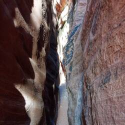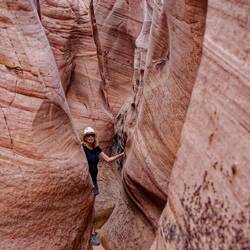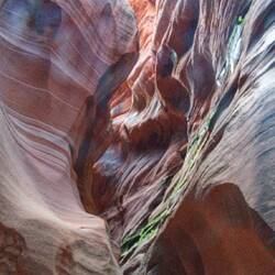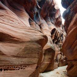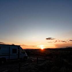 Am nächsten Morgen, nach einem gemütlichen Frühstück, geht es weiter nach Page. Dort Kaufen wir erst mal groß beim Walmart ein und entsorgen und versorgen uns an einer Tankstelle. Das ist ein toller kostenloser Service, obwohl das Wasser schon sehr chlorig ist. Weiter geht es zu einem BLM Visitor Center bei dem wir ein Permit für die Wave kaufen wollen. Dort angekommen erklärt uns die Dame, das man für die Erlangung dieses Permits eine dreitägige Lotterie mitmachen müsse und dann Glück brauche dieses zu erhalten. Es seien zu viele Menschen, welche diese Naturwunder besuchen wollen, also werden die Zutritte per Lotterie verlost. Das ist echt verrückt. Was würde passieren, wenn wir das in Europa auch so machen würden. Aber für den Wire Pass Canyon können wir einfach so, natürlich käuflich ein Permit für den heutigen Tag erwerben. Das geht natürlich nicht bei der Dame vor Ort, sondern nur über die Online App. Da unser Internet Provider aber leider keinen Empfang dort hat, kommen wir da nicht weiter. Ein WLAN gibt es im Visitor Center auch nicht. Ein junger Mann, auch ein Besucher, gibt uns Hotspot und so können wir dieses Permit doch noch erfolgreich ergattern. Wir fahren los, erst ca. 20 Meilen über die Hauptstraße und dann noch mal 20 Meilen eine unbefestigte Straße mit viel Waschbrett. Es ist Nachmittags etwa 3 Uhr als wir ankommen. Wir wandern also in die Schlucht und sind wirklich positiv überrascht. Es ist eine der vielen Windschluchten rund um Page. Das heißt der Canyon ist ganz schmal und lang und kann in der Länge durchwandert werden. An manchen Stellen ist es so eng, dass man mit beiden Händen die gegenüberliegenden Felswände berühren kann. Dann gabelt sich der Canyon und wir entscheiden uns, zunächst um den linken Teil zu laufen. Nach etwa einen Kilometer rasselt es neben meinem Fuß. Ich zucke zurück und da schlängelt sich eine ausgewachsene Klapperschlange vor mir die Schlucht entlang. Ich mache eine Satz zurück und laufe noch viel schneller ein paar Schritte. Thomas ist fasziniert von der Schlange und macht Fotos. Ich bin froh, dass ich nicht raufgetreten bin und entscheide, dass wir hier nun doch besser nicht weitergehen und umdrehen. An der Schluchtgabelung zurück laufen wir noch den anderen Schluchtteil eintlang. Dieser ist viel schmaler und schöner. An manchen stellen wächst er wellenförmig fast zusammen, wie der Antelope Canyon. Doch auch da haben wir wieder eine Klapperschlangenbegegnung. Diesmal eine kleine und junge Schlange. Etwa doppelt so groß wie ein Regenwurm und direkt neben Thomas. Ich sehe sie von hinten, da ich wegen der ersten Schlangenbegegnung wie gebannt auf den Boden schaue. Thomas geht einen Schritt zur Seite und macht natürlich wieder Fotos. Das reicht. Das waren nun zwei Klapperschlangen in einer Stunde. Wir begeben uns auf den Rückweg. Am Parkplatz angekommen ist dieser leer und wir sind hungrig. Also beschließen wir, vor der schönen Kulisse zu Abend zu essen. Danach fahren wir in Richtung Hauptstraße und bleiben an einem schönen Platz etwa 5 Kilometer von der Hauptstraße entfernt stehen um dort zu nächtigen.Leggi altro