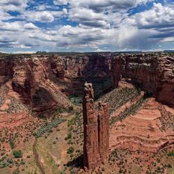 Nach einer ruhigen Nacht machen wir uns wieder auf in die Badland-Hügel, diesmal etwas mehr nach links, wo wir gestern nach rechts gewandert sind. Es wird eine tolle Wanderung, noch weiter als gestern und immer neue Formationen tun sich auf. Wir sehen viele Hoodoos, den versteinerten Wald, in dem wirklich versteinerte Baumstämme und Holzsplitter herumliege, das Adlernest und viele andere fantastische Formationen. Das ist ein echtes Erlebnis. Wir kommen zurück zum Buschen und nach einer kurzen Pause fahren wir weiter. Angesichts der kalten Nächte haben wir beschossen, unsere Route etwas zu ändern. Eigentlich wollten wir als nächstes zum Mesa Verda Nationalpark in Colorado. Wir verschieben das und bleiben erst einmal weiter im Süden und orientieren uns zunächst nach Arizona und Utah. Das gibt dann eine Schleife durch die Nationalparks von Arizona und Utah. In den meisten davon waren wir vor vielen Jahren schon, aber diesmal wollen wir uns mehr Zeit nehmen und mehr Wanderungen in den Parks unternehmen. Wir werden dann später zum Mesa Verda nach Colorado und in den Norden fahren, wenn es dort wärmer ist und im Süden so heiß wird, daß man da nicht mehr so gut wandern kann. Statt Mesa Verde nun also zunächst Canyon de Chelly und Monument Valley. Im Canyon de Chelly waren wir noch nicht, man kann da auch nicht alleine hinein, nur mit geführten Touren. Das ist hier alles Navajo-Land und die Navajo setzen die Regeln, wer in ihrem Land was darf und was nicht. Immerhin kann man an der Rim entlangfahren und zu den Aussichtspunkten gelangen. Heute auf der Anfahrt machen wir einen Stopp an der North Rim und wir sind überwältigt. Ein tiefer Canyon den das Wasser in die gewaltigen roten Felsen geschnitten hat. Vom Aussichtspunkt kann einem fast schwindelig werden, das ist wirklich einen Umweg wert. Wir fahren weiter zum Campground am Eingang zur Straße der South Rim, der unterliegt ebenfalls der Verwaltung der Navajos. Es ist ein schöner großer Campingplatz, der nur mäßig belegt ist, so dass wir uns einen schönen Stellplatz suchen und den Tag gemütlich ausklingen lassen können.Leggi altro