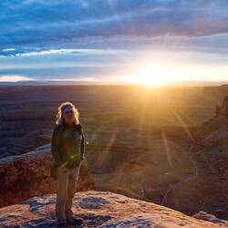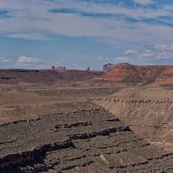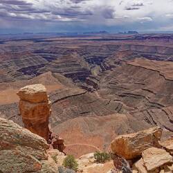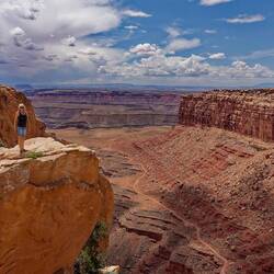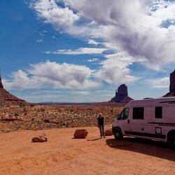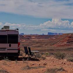 Am nächsten Morgen wachen wir mit dem leicht atemberaubenden Blick auf. Unsere Felsspitze hat gehalten. Wir frühstücken und machen nochmal am Morgen den gleichen Spaziergang wie gestern Abend. Der Canyon ist wirklich einmalig und da sind wir vor 17 Jahren einfach vorbei gefahren. Wir fahren weiter, über den unbefestigten Muddy Dukway das Plateau hoch bis zum Muley Point, einem Aussichtspunkt hoch oben auf den Plateau. Von dort kann man über die ganze Ebene bis zum Monument Valley sehen und davor liegt der tiefe Canyon des Flusses. Die Aussicht ist wie ein Gemälde, und so beschließen wir, heute nach nur 30 km stehen zu bleiben. Genau hier am Aussichtspunkt mit der super Aussicht. Wir fahren sogar die Markise aus, was natürlich nicht lange hält bei dem Wind. Heute ist also chillen angesagt. Wir wandern noch etwas an dem Aussichtspunkt entlang und entspannen im schönen Nichtstun vor unglaublicher Kulisse. Abends wandern wir noch zu dem Ende des Plateaus zu dem zweiten Aussichtspunkt und werden mit einem grandiosen Sonnenuntergang über der Schlucht und dem Plateauberg belohnt. Was ein toller Tag.Leggi altro
