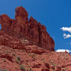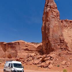Am nächsten morgen fahren wir wieder den Muley Dugway hinunter und biegen diesmal in das Valley of the Gods ab. Hier erwarten wir wieder viele tolle Felsformationen zu sehen, wie im Monument Valley. Und tatsächlich werden wir nicht enttäuscht. Auf etwa der Hälfte des Weges beschließen wir wieder unterhalb eines bizarr geformten Felsens stehen zu bleiben. Der Anblick ist fantastisch und so wandern wir um den Felsen der vor unserm Auto liegt. Der anfänglich als Wanderpfad erscheinende Weg verliert sich mit der Zeit im Nichts. Also improvisieren wir und schlagen uns rund um die Felsnadel durch. Das ist anstrengend, da der Untergrund sehr bröselig und rutschig ist. Wieder zurück am Buschen genießen wir den Nachmittag, ein gutes und spätes Abendessen und dann unser Sundowner Bierchen. Beim Essen fährt doch tatsächlich ein Land Rover mit Berliner Kennzeichen vorbei. Thomas ruft noch ‚Hallo Berlin‘, aber das Auto fährt weiter. Doch bei unserem Bierchen kommt ein Mann die Straße entlang gelaufen und auf uns zu. Er spricht uns an und es ist tatsächlich der Berliner von vorhin. Er steht etwas weiter die Straße runter und hat Thomas Ruf im Auto doch gehört. Also laden wir ihn zu einem Bierchen ein und er erzählt uns, dass er schon seit mehr als einem halben Jahr in den USA unterwegs ist. Nach einem halben Jahr ist er zurück nach Deutschland geflogen um seine Mutter zu pflegen. Das hat er mehr als 6 Monate gemacht und nun kümmern sich seine Geschwister um die Mutter und er ist wieder zurück geflogen und fährt nun weiter über den Süden der USA durch Mittelamerika. Er hat sich nämlich auch die Panamericana vorgenommen, genauso wie wir und hat dafür auch in etwa 3 Jahre eingeplant. Sehr interessant.Leggi altro