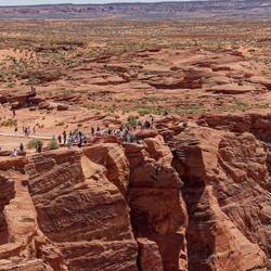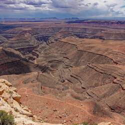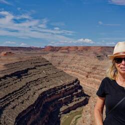 Am nächsten Morgen geht es dann tatsächlich ins Monument Valley. Wir sind gespannt, ob man uns rein lässt – gestern war wegen Bauarbeiten geschlossen – und was es kostet, bestimmt sehr teuer. Aber weit gefehlt, alles völlig problemlos und mit 8$ pro Person sogar noch echt günstig. Wir fahren mit unserem Buschen dieselbe Runde, die wir vor 17 Jahren schon mit dem Leihwagen gemacht hatten – andere Routen gibt es nicht, und auch Wanderwege sind innerhalb dieses Parcours praktisch nicht vorhanden. An derselben Stelle, an der wir damals die Kinder auf einem Indianerpferd fotografieren konnten, stehen noch immer die Pferde und die Navajo, damit man sich fotografieren lassen kann. Das machen wir zwar nicht, aber viele viele Fotos von den eindrucksvollen Fels,Stümpfen machen wir natürlich schon. Es ist eine faszinierende Landschaft, daran hat sich in den vergangenen 17 Jahren nichts geändert. Wir halten zwischendurch immer wieder an für Forostops und an einer besonders guten Stelle packen wir auch unsere Campingstühle aus und gönnen uns ein Bierchen und die letzten Nachos mit der Salsa vom Mexikaner vor den Bitsi Badlands – top! Am nächsten Stop ist ein Teil der Straße abgesperrt, da kann man ja tatsächlich zu Fuß entlang wandern, was wir auch prompt machen. Sehr anstrengend allerdings in der prallen Sonne trotz Sonnenhut. Wir fahren weiter und am Ausgang parken wir das Buschen nochmals. Hier gibt es auf der Karte einen Wanderweg, rund um einen der „Butte’s“ (so heißen die Felsstümpfe) herum, den müssen wir machen. Es läuft sich gut, immer wieder mal auf und ab, teilweise durch ausgrtocknete Bachbetten. Wir staunen, als uns zwei Kanadier mit ihren Mountain-Bikes entgegen kommen, gerade an der steilsten und sandigsten Stelle – da müssen sie kurz schieben – echt tough, vor allem mit echten konventionellen Fahrrädern, keine E-Bikes. Wir wandern weiter und überholen noch eine kleine Dreiergruppe, die sich lautstark auf italienisch über alles mögliche unterhalten und gar nicht zum schauen oder fotografieren anhalten, muss halt jeder machen, wie er will. Die Wolken, die zuerst am frühen Nachmittag als „Schönheitswölkchen“ angefangen hatten, ziehen sich nur immer mehr zusammen, das gibt teilweise echt schöne Stimmungsbilder. Hoffen wir mal, dass es dabei bleibt und nicht zu regnen anfängt. Aber wir haben Glück, es bleibt trocken. So geht ein wunderbarer Tag seinem Ende zu und wir fahren weiter. Wir wollen suchen, ob wir das Steakhouse wiederfinden, in dem wir von 17 Jahren waren, wo es Bier und Cola aus Cowboystiefeln zu trinken gab. Wir finden es auch tatsächlich, es hat sich ebenfalls vergrößert und ein Motel hinzugebaut, aber das Steakhouse hat heute geschlossen. Na gut, dann eben nicht. Die Wolken ziehen sich zusammen und der Wind wird auch ziemlich heftig. Da jetzt noch die unbefestigte Straße zum Mully Point hoch zu fahren, ist wirklich keine gute Idee. Also biegen wir vorher ab und fahren in den Goosenecks State Park. Die Rangerin am Eingang deutet auf die Rim und sagt wir können uns einen Platz aussuchen der uns gefällt. Also fahren wir an die Rim. Der erste Blick auf dem Canyon ist atemberaubend. Tief unten windet sich der Fluß in kurzen eng aneinander liegenden Schleifen durch das Plateau. Vom Aussichtspunkt des State Parks kann man alleine 4 Schleifen sehen. Das ist wirklich grandios. Wir fahren an der Rim der eine Schleife entlang und entscheiden uns für einen Stellplatz ziemlich weit hinten. Wir stehen also quasi auf einem mittleren Finger des Canyons um den sich eine der Schleifen des Fusses entlang windet. Echt irre. Nach einem Abendessen mit Blick in die Tiefe, was wirklich nichts für nicht schwindelfreie Menschen ist, machen wir noch einen Abendspaziergang entlang der Canyon Rim.Leggi altro