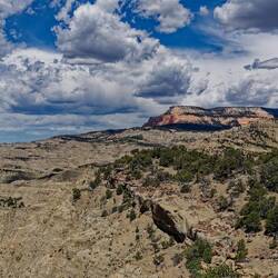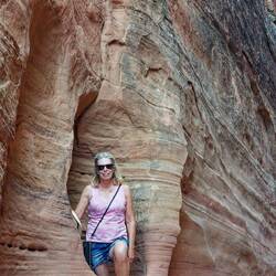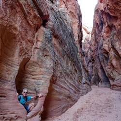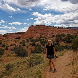 Nach einer wunderbar ruhigen Nacht genießen wir das Frühstück vor der Bryce Canyon Rim und können uns kaum losreißen. Erstaunlicherweise haben wir sogar sehr guten Mobilnetzempfang, so daß wir zu Hause anrufen können und mit den Kindern plaudern können. Doch dann fahren wir weiter hinein ins Grand Staircase Escalante. Wir kommen noch an einer kleinen Ansammlung von Häusern vorbei, aber weiter gibt es hier nichts. Ein paar Farmen sieht man und Vieh auf der Weide. Die Felsformationen werden immer steiler und schroffer. In Escalante selber bekommen wir am Visitor Center ein kostenloses Backcountry Permit, welches uns berechtigt, in ausgezeichneten Bereichen zu übernachten. Wir erkundigen uns nach schönen Wanderungen und bekommen den Zebra Canyon empfohlen. Wir entschließen uns zu dem etwa dreistündigen moderaten Hike und fahren zu dem Ausgangspunkt der Wanderung. Der Parkplatz liegt auf einer weiten Ebene mit schöner Sicht. Vielleicht bleiben wir hier heute Nacht stehen, wenn wir keine Lust zum Weiterfahren mehr haben. Die Wanderung führt von der Ebene durch einen roten Canyon mit ausgetrocknetem Flußbett, an bizarren Feldformationen vorbei zum eigentlichen Zebra Canyon. Der Canyon ist schmal und beim weiteren Hineingehen wird er immer schmaler. Bald schon passt Thomas nicht mehr durch, obwohl er sich schon die Schuhe ausgezogen hat. Nach etwa 50 Metern wird es dann auch zu schmal für mich. Nichts geht mehr, es sei denn, man würde zwischen die Wände geklemmt nach oben wandern und sich akrobatisch durchdrängeln. Wir gehen zurück und wollen noch in den Tunnel Canyon daneben. Der soll immer etwas Wasser führen, was man angesichts der Trockenheit kaum glauben kann. Wir wandern also um einen Canyon herum, da dieser eingefallene Felswände hat, und eine steile flache Steinebene rauf. Wir müssten runter und auf der anderen Seite hoch und dann in den Canyon rein. Das ist uns dann doch etwas viel und wir beschließen, uns auf den Rückweg zu machen. Unsere Mägen knurren auch schon. Zurück auf dem Parkplatz machen wir erst mal Essen und beschließen dann tatsächlich, dort zu bleiben. Eine junge Amerikanerin, welche im Auto nächtigen will, stellt sich noch neben uns und so genießen wir den Sonnenuntergang über der weiten Ebene.Leggi altro