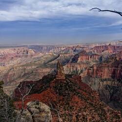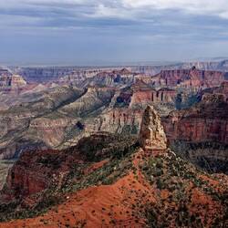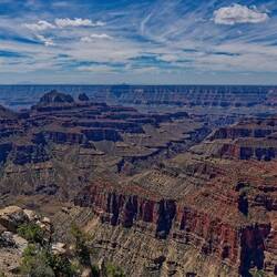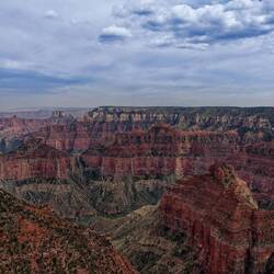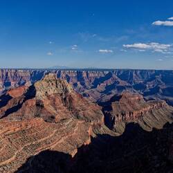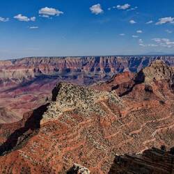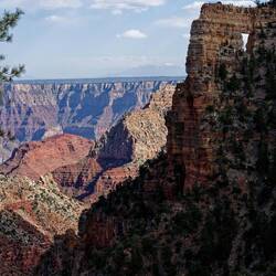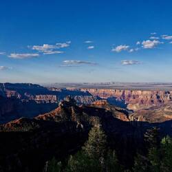 Am nächsten Morgen geht es dann weiter mit dem Ziel Grand Canyon North Rim. Zunächst kommen wir aber an der Marble Lodge vorbei. Die hatte uns vor 17 Jahren gerettet, als wir in Page wirklich jedes Hotel und Motel und was es sonst noch gab abgefahren hatten und beim besten Willen keine Unterkunft finden konnten. Damals mussten wir die ganze Strecke im Dunklen zurückfahren. Die Lodge existiert immer noch, sie ist sogar um einiges größer geworden, wie eigentlich alles in den letzten 17 Jahren – kein Wunder, ist ja auch eine lange Zeit. Wir sehen uns um und ich kaufe mir ein Schnapsglas als Andenken. Weiter geht es zu den Vermillion Cliffs und den Steinformationen davor. Große Steine („Boulder“) liegen auf eher dünnen Unterlagen, man denkt, sie müssten jeden Moment herunterfallen, was sie aber nicht tun. Damals hatten die Indianer Mauern darunter gebaut und damit Höhlenwohnungen erstellt. Dort hat sich nicht viel verändert. Wir fahren weiter in Richtung Grand Canyon. Die Straße windet sich immer weiter den Berg hinauf, es wir kühler und die Vegetation nimmt eher alpinen Charakter an. Kein Wunder, die North Rim des Grand Canyon liegt auf über 2.550m Höhe. Vor dem Parkeingang ist eine weite Hochebene, teils bewaldet, teils sieht man, daß dort vor einigen Jahren ein Waldbrand stattgefunden haben muß. Es wird richtig kühl und an einigen Stellen liegt in geschützten Ecken noch Schnee. Wir fahren in den Park hinein und orientieren uns erst einmal zur Lodge. Von dort hat man einen atemberaubenden Blick über den Canyon und einige tolle Aussichtspunkte sind nahe dabei. Die Lodge hat aus dem Restaurant einen genialen Blick über den Canyon, mit großen Panoramascheiben, man sitzt da (gefühlt) fast direkt an der Abbruchkante. Wir hatten bereits im Internet einen Tisch für morgen Abend gebucht, konnten allerdings erst einen sehr späten Tisch bekommen, 21:00, da ist schon wirklich spät und da ist es dann auch schon fast dunkel. Wir fragen also am Schalter, ob es eine frühere Möglichkeit gibt, und tatsächlich können wir den Termin auf 16:30 vorziehen, das passt klasse. Außerdem gibt es mittags keine Reservierung, wir könnten also auch heute direkt in ca. 20-30min hier zu Mittag essen. Das machen wir doch glatt. Wir hinterlegen den Namen und warten dann in der Lounge – auch dort tolle Panoramascheiben mit Blick auf den Canyon – bis wir aufgerufen werden. Die Mittagskarte ist etwas einfacher als die Abendkarte, aber das passt uns sehr und das Essen ist top. Wir sitzen direkt in der ersten Reihe, besser kann man nicht tafeln. Danach geht’s zurück zum Buschen und wir fahren einige der Aussichtspunkte am östlichen Teil der Rim an. Wir kommen zum Point Imperial und machen eine Wanderung zum Cape Final. Da geht es etwa eine Stunde durch den Wald, sehr schön, aber ohne Sicht auf den Canyon, und plötzlich kommt man an der Rim an und hat wieder einen tollen Blick. Wir gönnen uns die mitgebrachten Muffins und einen Tee und wandern zurück. Weiter geht es zum Cape Royal, dem äußersten Punkt der Strecke, immerhin 37km vom Abzweig von der Hauptroute durch den Park entfernt. Das ist der ideale Punkt für den Sonnenuntergang an der North Rim und mittlerweile ist es auch Abend, genau die richtige Zeit. Der Blick ist überwältigend und der Sonnenuntergang ist klasse. Nun müssen wir uns um unsere Übernachtung kümmern. Auf dem Weg war ein Picknickplatz, an dem kein Schild stand, daß dort das Übernachten verboten sei (die stehen sonst überall sehr präsent und unübersehbar), also beschließen wir, dort unsere Nacht zu verbringen. Es ist auch sonst keiner da und der Platz ist so abgelegen, daß wir eine sehr ruhige Nacht verbringen.Leggi altro