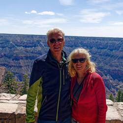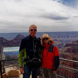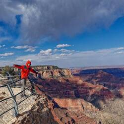 Am nächsten Morgen fahren wir nach einem guten Frühstück die lange Strecke wieder zurück und halten diesmal am Parkplatz für den Bright Angel Trail. Das ist der Wanderweg von der North Rim in den Canyon hinein. Wir würden da ja gerne hindurch wandern, aber dazu braucht man unten eine Unterkunft. Die werden – sowohl für die Phantom Ranch als auch für den Campground – in einer Lotterie verlost. Aktuell kann man sich für Termine ab Juni 2025 bewerben, allerdings ohne Garantie, daß man auch einen Platz bekommt. Sie wollen die Massen im Griff behalten, das ist verständlich, aber für uns Übersee-Touristen ist das völlig impraktikabel. Sehr schade, das hätten wir so gerne gemacht. So wollen wir also wenigstens ein Stück hinunter, so daß wir dann wieder zurück wandern können. Es ist eine tolle Wanderung, sehr eindrucksvoll, man ist so richtig mitten drin. Es kommen uns sehr viele Wanderer entgegen, und mit viele kommt man in ein kurzes „wie geht’s“-Gespräch, da sind die Leute in den USA sehr offen. Aus reiner Neugierde frage ich bei den meisten, ob sie von unten kommen und wann sie losgelaufen sind, einfach aus Interesse, wie lange denn der Aufstieg so dauert. Wir sind sehr erstaunt zu erfahren, daß sehr viele (gefühlt fast die Hälfte) uns erzählen, daß sie heute sehr früh an der South Rim losgelaufen sind, und nun sind sie schon hier, es ist noch nicht Mittag! Noch erstaunter sind wir, daß viele sagen, sie wollen auch heute noch wieder zurück zur South Rim, also Rim-to-Rim & back in einem Tag!!! Überall stehen die Schilder, daß man auf keinen Fall versuchen soll, in einem Tag hinunter und wieder hinauf zu wandern, sehr viele würden sich da total überschätzen und es kämen auch jedes Jahr sehr viele dabei zu Tode. Und die machen das ganze Programm dann gleich in doppelter Ausführung. Zugegeben, sie sehen alle ein bisschen nach Marathon-Läufer aus und haben eigentlich nichts dabei als eine Flasche, die man an mehreren Stellen am Weg auffüllen kann, aber trotzdem, Hut ab! Einer der Kandidaten ist eher noch älter als ich und wir sollten ihn später, als wir dann wieder hinaufsteigen, wieder herunterkommen sehen. Ich sage noch „welcome back“ und „good luck“, da kommen wir ins Gespräch. Immer die erste Frage, woher man kommt, und „Germany“ ist dann ein Zauberwort. Die meisten waren schon da oder wollen mal hin oder haben Vorfahren von dort. Der Rim-to-Rim-Marathon Mann ist öfters beruflich in Sindelfingen und hat auch Verwandtschaft in Villingen-Schwenningen. Der macht das tatsächlich, doppelte Tour an einen Tag, zeitlich ist er ganz gut dabei. Das Schlüsselerlebnis ist allerdings eine andere Begegnung. Wieder kommen wir ins Gespräch, diesmal kommt er vom Bright Angel Campground (das ist der ganz unten am Colorado), wieder sage ich „lucky you, you won the lottery“. Aber diesmal kein glücklicher Kommentar, man habe Glück gehabt, sondern er erklärt uns, daß er den Arizona-Trail wandert, das ist ein 800-Meilen Fernwanderweg von der mexikanischen Grenze quer durch Arizona bis zur Grenze nach Utah in der Nähe des Wire Pass Canyon (wo wir vorgestern waren) und die Durchquerung des Grand Canyon ist eine der Etappen dieses Weges. Da gäbe es ein begrenztes Kontingent an Plätzen im Campground, man müsse nur im Backcountry Office am Parkeingang fragen, eigentlich sei da immer noch ein Platz für die Fernwanderer zu haben. Das ist eine Schlüssel-Begegnung: Dann wandern wir eben auch den Arizona-Trail, und wenn es nur diese eine Etappe ist. Nachdem wir wieder zurück am Buschen sind, fahren wir also zum Backcountry Office, das hat zum Glück gerade noch geöffnet – bis 18:00 und es ist 17:30; normalerweise schließen die immer schon um 17:00. Wir fragen nach und erzählen vom Arizona-Trail, und tatsächlich, von den 11 Plätzen in der dafür vorgesehenen Group Site sind nur vier vergeben, wir können also noch zwei haben. Wir bekommen das Permit und gleich noch einen Platz im Campground hier an der North Rim für heute Nacht. Den brauchen wir ja eigentlich nicht, aber nehmen ihn natürlich mit, wir sind ja jetzt Fernwanderer. Das hätten wir nie gedacht, daß wir das doch noch hinbekommen. Nun müssen wir noch ein bisschen Vorbereitungen treffen. Wir haben zwar Schlafsäcke und Isomatten, aber kein Zelt. Wir gehen in den General Store am Campground und schauen, was es gibt. Wir erstehen ein „Schlauchzelt“ 2,40x1,80m, das ist eigentlich nur eine Hülle, die mit einer Schnur zu einem Dachzelt aufgespannt wird. Die Dame im Backcountry Office sagte aber, die Temperaturen seine nachts „in the fifties“, das wären 10°C, da brauche wir etwas. Ich nehme noch einen Pack leichter Heringe dazu und etwas Jerky (getrocknetes Rindfleisch) und dann geht’s zurück zum Buschen. Wir schauen auf die Uhr und tatsächlich wird es Zeit für unser 16:30 Abendessen in der Lodge. Wir beeilen uns und werden auch gleich an einen schönen Fensterplatz gesetzt. Der Blick in den Grand Canyon ist immer wieder traumhaft und das Abendessen ist auch gut. Eine Stärkung vor der Wanderung morgen. Wir fahren wieder an denselben Platz wie gestern zur Übernachtung, morgen müssen wir früh am Parkplatz am Wanderweg sein (da darf man nicht übernachten), da dann ja das Buschen dort stehen bleiben muss, bis wir zurück sind. Letzteres ist erlaubt, sonst geht das ja mit der Wanderung nicht, nur im Auto schlafen darf man nicht. Wir packen also unsere Rucksäcke, einschließlich aller Jacken und Innenjacken und gehen früh ins Bett. Wir freuen uns schon sehr auf Morgen.Leggi altro