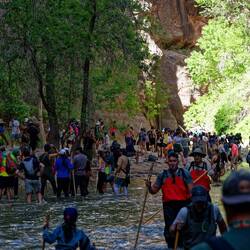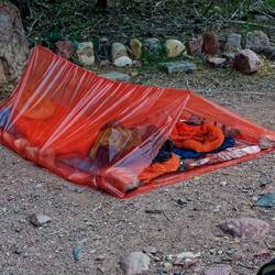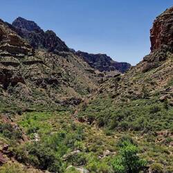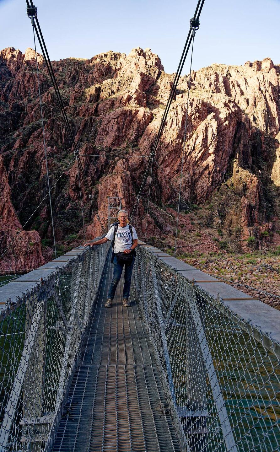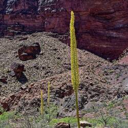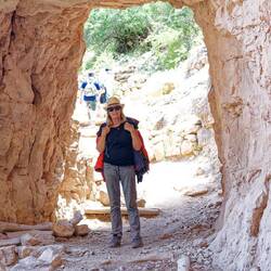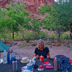 Heute stehen wir früh auf und beeilen uns mit dem Frühstück, schließlich haben wir Großes vor – wir wollen ja den Grand Canyon durchwandern. Wir sind über eine Stunde früher am Parkplatz des Bright Angel Trailhead als gestern, aber anders als gestern sind alle Parkplätze belegt. Wir müssen also ein Stück weiter an der Straße parken, aber einen halbwegs passablen Platz finden wir da auch. Wir schultern unsere Rucksäcke und los geht’s. Es ist viertel vor acht, und Komoot sagt, daß wir etwa neun Stunden brauchen. Kurz nach dem Start hören wir Muli-Geklapper. Kein Problem, sage ich, die kommen uns entgegen und außerdem sind sie viel schneller als wir. In beidem lag ich falsch! Sie waren auch auf dem Weg nach unten und deutlich langsamer als wir, aber wir konnten sie nicht überholen. Das unangenehmste aber war der Gestank. Die Mulis lassen ständig alles fallen, vorne und hinten und das stinkt wirklich erbärmlich, zumal wenn dann noch die pralle Sonne drauf scheint. Also lassen wir ihnen einen Vorsprung, auch wenn uns das ausbremst. Manche der Reiter sitzen ganz fest im Sattel, aber die beiden hintersten vor dem Schlußmann sind junge College-Boys, die völlig unsicher und mit wenig freudiger Mine darauf balancieren – na ja, jeder, was er muß. Kurz vor dem Tunnel (bei etwa 4 km) schließen wir auf, da machen sie bestimmt eine Pause, dann ziehen wir vorbei. Und tatsächlich, da sitzen alle ab und wir huschen durch den Tunnel und vorbei. Was wir nicht wußten, aber dann gemerkt haben, die Muli-Tour war dort ohnehin zu Ende, danach ging es wieder hinauf. Wir können nun aber den Canyon genießen und es wird eine ganz tolle Wanderung. Es ist anstrengend, weil es immer heißer wird. Die Jacken mit dem Innenfutter sind längst über den Rucksäcken und an jeder der Wasserstationen (davon gibt es zum Glück einige) tanken wir nach. Der erste Teil der Strecke ist wirklich sehr steil, das ist der Abstieg in den Bright Angel Canyon, einem Seitenarm des Grand Canyon. Nach knapp der Hälfte der Strecke kommen wir am Cottonwood Campground vorbei, ab da wird es dann etwas flacher. Die Szenerie ist hochalpin, hohe Berge und steile Felswände um uns herum, nur die Vegetation ist anders. Waren oben noch Kiefern vorherrschend, gibt es nun mehr Wacholder (die werden hier baumhoch) und Sagebrush, die typischen Büsche des Westens, sowie einige Agavenarten, die hohe Blütenstengen ausbilden. Es ist eine phantastische Wanderung, zum Schluß wird die Schlucht immer enger und der Bach unter uns immer größer. Schließlich erreichen wir gegen 16:30 die Phantom Ranch, das Ziel des heutigen Tages. Einen Platz zum Abendessen können wir leider nicht mehr bekommen, alles ausgebucht, aber zum Frühstück morgen um fünf hatten wir noch zwei Plätze buchen können. Erst einmal lassen wir uns ein gutes Bierchen zischen, dann gehen wir zu unserer Campsite, die Nr. 33 ganz am Ende. Wir hatten zum Glück etwas zum Essen mitgenommen (jeder einen Topf mit Haferflocken und Joghurt, das hält sich gut und macht satt), das ist gut. Ich baue unser Tunnelzelt auf, indem ich die Schnur zwischen zwei Bäumen spanne und die unteren Ränder mit Steinen fixiere, Es sieht tatsächlich aus, wie ein Tunnelzelt, nur am Giebel offen. Claudia ist skeptisch – da will sie nicht hinein, es ist leider eher flach. Ich versuche es, aber es ist tatsächlich eher unangenehm. Da es warm ist und nicht nach Regen aussieht, beschließen wir, direkt unter freiem Himmel zu schlafen. Ich mache die Schnur weg, der First fällt herunter und was eben noch ein Zelt war, ist nun eine Unterlage, auf der wir gut schlafen können. Ganz spät kommt noch ein junger Mann an, der ein Fahrrad trägt. Ja, wirklich, ein Mountain-Bike, das er auf einem speziellen Tragegurt befestigt hat. Wir fragen ihn, und er meint, daß er den Arizona-Trail per Fahrrad macht, aber hier im Grand Canyon ist ja das Fahrrad nicht erlaubt, also muß er es tragen. Wow, das ist auch eine Leistung! Die Nacht wird sehr angenehm, allerdings ist fast Vollmond, es bleibt eher hell, aber es bleibt warm und in unseren dicken Schlafsäcken schlafen wir sehr gut.Leggi altro