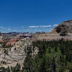 Am nächsten Morgen fahren wir wieder in das Zion Tal, vorbei an den Erdbeercremefelsen mit Sahne. Wir stoppen nur kurz am Visitor Center, um unseren Müll zu entsorgen und fahren schnell weiter raus aus den Menschenmassen. Unterhalb von Springdale gibt es noch ein Seitental des Zion Parks. Wir biegen ab und werden mit wunderschönen Blicken in den Zion Canyon belohnt. Von der Rückseite und mit wenigen Touristen. Wir machen eine kurze Wanderung und fahren bis an das Ende zu einem großen See, der eigentlich ein Wasserreservoir ist. Rund um den See kann man Campen. Wir suchen uns einen freien Platz und essen gemütlich zu Mittag. Der See liegt auf 2800 Meter Höhe, überall sieht man noch Schneefelder. Mit seinen vielen Espen rund herum sieht er fast aus wie ein See in Finnland. Wir genießen die Ruhe und machen auf dem Rückweg noch einen Stopp um den Zion-Park von oben hinten zu bewundern. Wir haben die Abfahrt verpasst und müssen nochmal umdrehen, aber wir werden mit einem weiten und gigantischen Ausblick belohnt. Immer wieder fahren wir aus dem Zion Park raus und rein. Bei einer der Ausfahrten biegen wir ab und finden einen schönen Parkplatz im BLM Land, welcher von Kletterern genutzt wird. Wir stellen uns hin und genießen den Sonnenuntergang über den bizarren rot und cremefarbenen Felsen des Zion Canyons.Leggi altro
