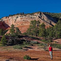 Am nächsten Morgen brechen wir nach einem gemütlichen Frühstück von der Coral Pink Sand Dune auf. Wir machen noch einen kurzen Stopp und laufen in die wirklich schöne Dünenlandschaft. Dann fahren wir weiter Richtung Mount Carmel. Dort biegen wir zum Zion Park ab. Die Landschaft wird immer steiniger und die Felsen leuchten in roten und cremefarbenen Farben. Thomas sagt, wie Erdbeercreme mit Sahne. Die Formen sind bizarr und wunderschön. Doch kurz nach dem Parkeingang stoppt der Verkehr und es kommt zu einem Stau. Zum Glück haben wir kurz davor für einen Photostop geparkt. Also lassen wir das Auto stehen und gehen zum nächsten Wanderweg der zum Canyon Overlook führt. Es ist ziemlich voll, da alle Leute natürlich lieber wandern als im Stau zu stehen. Die Aussicht über das Tal ist jedoch super, so dass es sich wirklich gelohnt hat. Zurück am Buschen hat sich der Stau aufgelöst und wir kommen glatt durch den Tunnel. Wir beschließen, kurz vor der Abbiegung in das eigentliche Tal des Zion Canyons zu parken und die etwa 800 Meter bis zur Abbiegung zu laufen. Dort müsste ein Bus uns dann in das Tal bringen. Doch leider gibt es an der Einbiegung keine Bushaltestelle in das Tal hinein, so dass wir noch gut 2 km bis zur nächsten ersten Haltestelle laufen müssen. Dort quetschen wir uns in einen prope-vollen Bus und fahren bis zum Ende. Wir reihen uns im Gänsemarsch zu dem Fluß im Canyon ein. Das ist wirklich kein Spaß. Wie ruhig war es hier vor 17 Jahren. Heute übertönen die Stimmen von hunderten Menschen die majestätischen Wände des hohen Canyons. Wir laufen bis zu der Stelle, an der man nur durchs Wasser weiterkommt. Die ersten Touristen haben sich wasserfeste Schuhe und Wathosen geliehen. So geht es mit großem Getöse ins und durch das Wasser. Wir drehen um und sind froh, den Massen zu entkommen. Doch das geht nur kurz. An der Bushaltestelle ist eine lange Schlange. Wir reihen uns ein und besteigen den Bus zurück. Zum Glück stoppt der raus fahrende Bus an der Abbiegung und wir können aussteigen und die 800 Meter zurück zum Buschen laufen. Was ein Massentourismus. Die Schönheit des Zion Canyons wird dadurch total zerstört. Wir fahren wieder zurück Richtung Mount Carmel und finden einen schönen Stellplatz im Wald.Leggi altro
