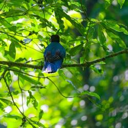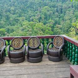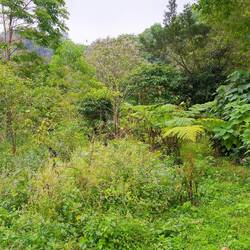 Nach einer ruhigen Nacht wachen wir auf und uns erwartet ein strahlend blauer Himmel. Die Wolken von gestern sind wie weggewischt und das dschungelige Bergpanorama liegt frei vor uns. Nach demLæs mere
