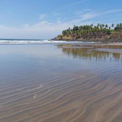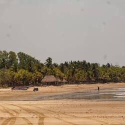 Wir beginnen den Tag wie wir ihn gestern beendet haben, mit einer langen Strandwanderung. Wir laufen bis wir nicht mehr über einen Fluß kommen. Der Strand ist völlig menschenleer und mit PalmenLæs mere