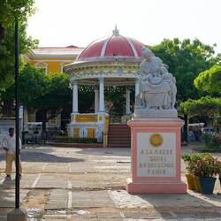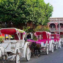 Heute lassen wir das Buschen am Lago Apoya stehen und nehmen ein Taxi nach Granada. Wir lasssen uns am zentralen Zocalo absetzen. Der Platz ist gerahmt von Kutschen, welche alle kitschig geschmücktLæs mere