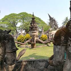 Erster Halt: Vat Phou, ein alter Khmer-Tempel, der einzige noch so gut erhaltene in Laos, UNESCO - Weltkulturerbe und in Teilen sogar älter als Angkor Wat. Außerdem ist er als Tempel immernoch in Benutzung. Sehr beeindruckend und sehr schön. Die Reliefs sind immernoch sehr gut erhalten und es macht schon Eindruck, dass er solange die Zeit überdauert hat und wenn auch windschief noch immer steht und über die Jahrhunderte immer in Benutzung gewesen ist.