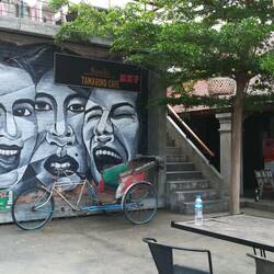 Außerdem werden wir zu zwei Dörfern von ethnischen Minderheiten gebracht, aber das fühlt sich eher an, als müsste man durch einen Zoo wandeln und sich unsagbar seltene Tiere ansehen. Kirstin, Frank und ich bleiben etwas betreten am Straßenrand stehen und machen nur wenige Aufnahmen von der Umgebung. So unangenehm ist uns das ganze.