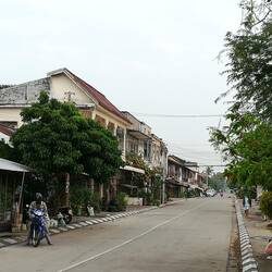 Heute morgen hatte ich noch ein paar Stunden Zeit, um mir Savannakhet anzuschauen. Es war noch angenehm kühl, nachdem es gestern Abend einen kurzen aber kräftigen Schauer gab. Und überraschenderweise kam der Ort um sieben noch sehr verschlafen daher. Normalerweise ist dort in anderen Orten Laos schon viel mehr los. Viele Geschäfte öffnen gerade erst. Vieles hat sogar noch geschlossen. So streifte ich durch den kleinen, hübschen Ort bis zum Mekong. Von hier aus sieht man wieder Thailand am anderen Ufer.