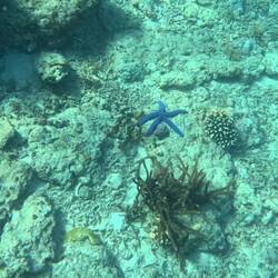 Das Korallenriff an der ersten Insel war so schön. Bunt und wir konnten so viele verschiedene Fische sehen. An derLes mer