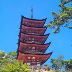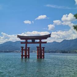 Heute sind wir mit dem Boot zu der Insel Miyajima gefahren. Eine kleine Insel mit sehr vielen Tempeln😂 und das berühmte Tor im Wasser.