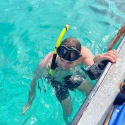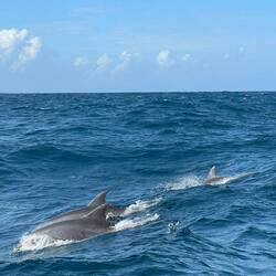 Wir sind mit einem kleinen Böötchen raus aufs offene Meer gefahren, um mit Delfinen zu schnorcheln.
