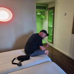 Grauenhafte Horrornacht in der schlimmsten Absteige ever. Das stinkende Wasser der Klimaanlage tropfte die ganze Nacht auch über unsere Kleidung. Versiffter Bodenbelag. In der Nacht schrie ein KindLeggi altro