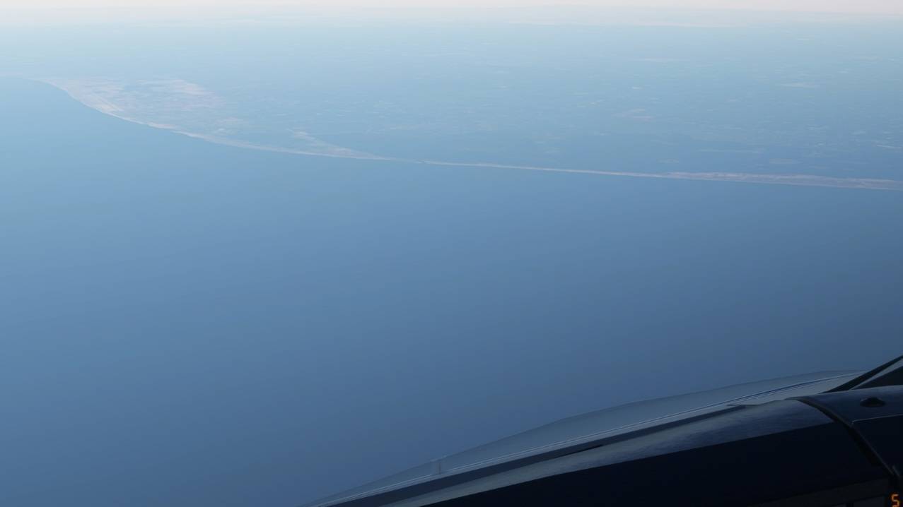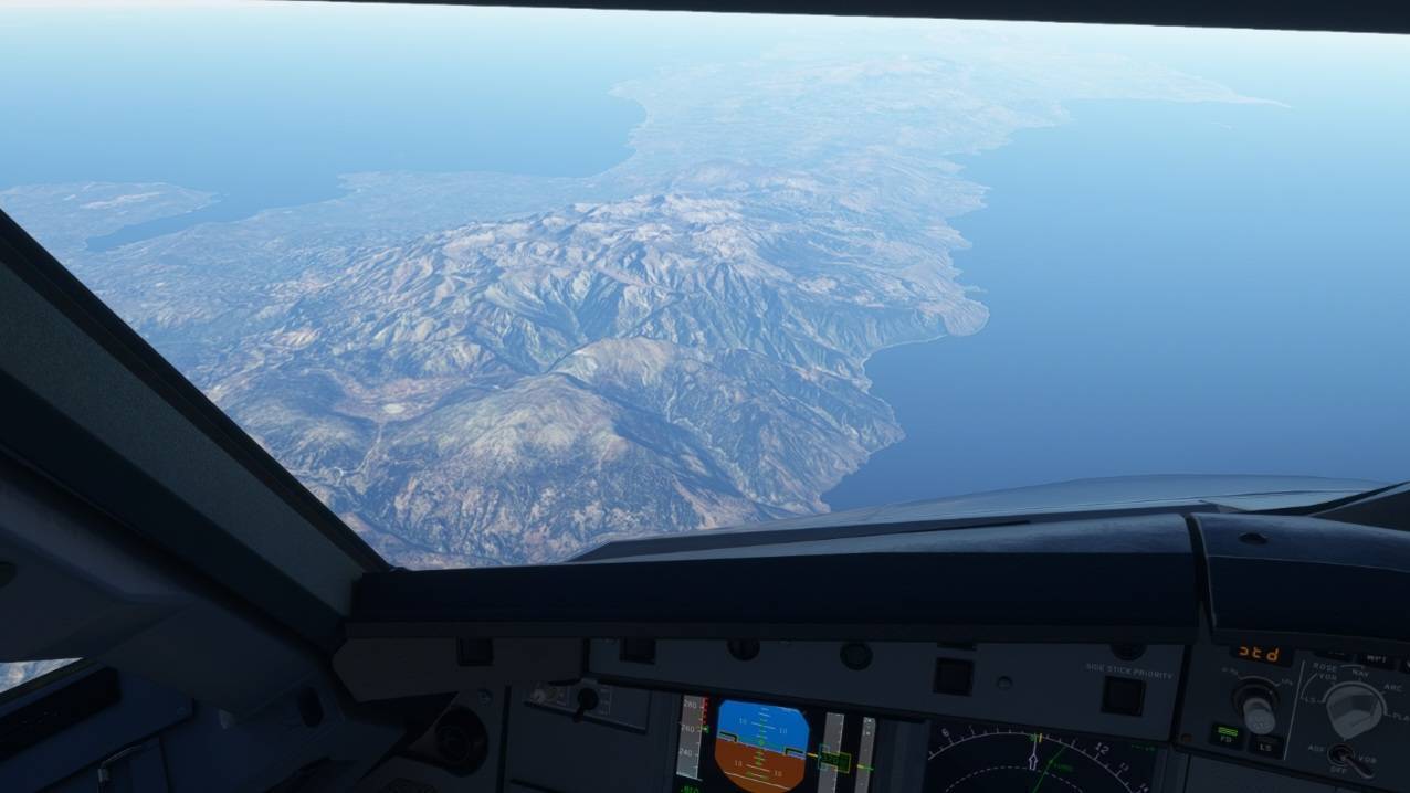 Land in sight! Passing Kreta in 37.000 ft. After a long time over the Mediterranean Sea.