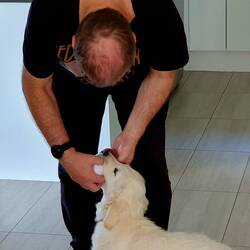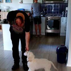 We had a lovely morning tea with Aiden, Nat and the puppy, Frankie. Hubby is still a "dog" person and he loves to play.