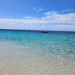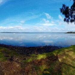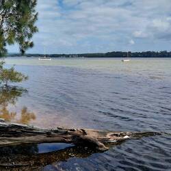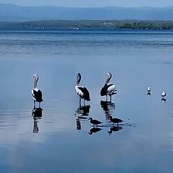 This morning we had a 1 hour walk around St Georges Basin i.e. "Basin Walk" and it was quiet and calm with a few fisherman and fisherwomen. We gave Nat time to calm her dog Frankie as he is still aLeggi altro
