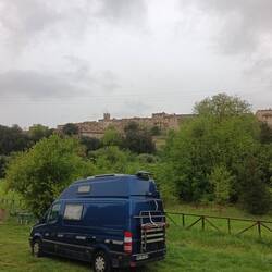 Tja..es kann ja nicht nur die Sonne scheinen..Anfangs sah es noch ganz gut aus,aber nun regnet es seit Stunden und Gewitter durften wir auch ertragen.Schöner großer kostenloser Platz mit AussichtLäs mer