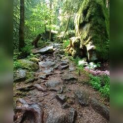 Festes Schuhwerk ist ein Muss.Es geht über Felsen,Baumwurzel,Brücken und Treppen.