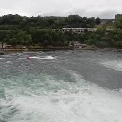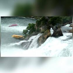 Der Rheinfall bei Schaffhausen in der Schweiz ist der größte Wasserfall Europas. Auf einer Breite von 150 Metern stürzen durchschnittlich 700.000 Liter Wasser pro Sekunde 23 Meter in die Tiefe.