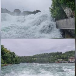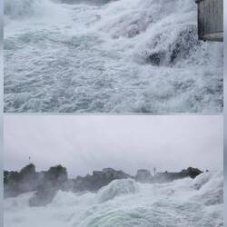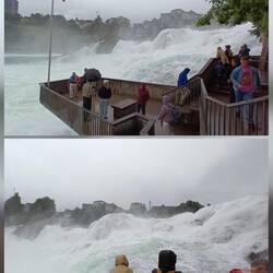 Ausgerechnet heute ist es bedeckt und regnet fast den ganzen Tag.Wir hatten einen geplanten Abstecher zum Rheinfall gemacht.Schade das es kein besseres Wetter für die Fotos gab ,aber ein tolles Naturschauspiel was ich schon immer mal sehen wollte.