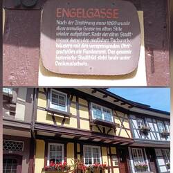 Nach dem Stadtbrand 1669 nutzten die Einwohner ihren Holzreichtum und die überlieferten Erfahrungen im Fachwerkbau und setzten ihre Fachwerkhäuser wie auch bei den Außenmauern der Engelgasse auf die innere Stadtmauer. Mit überragenden Obergeschossen schufen sie mehr Wohnraum und sorgten mit den zu den Gassen hin offenen Zugängen zu den Kellern für die problemlose Einlagerung ihres (Wein)vorrats.