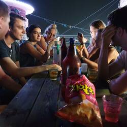 Eenmaal aangekomen is het gastenverblijf, aten we in een lokaal restaurantje Fried Shrimp Rice met Jajjang sauce. De avond sloten we af met een drankje.