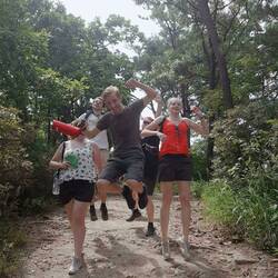 Tijdens onze tweede dag in Namdo hiketen we samen, speelden we een stadsspel en traditionele Koreaanse spelen en lieten we een wenslantaarn opgaan.
