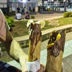 - wo wir können, sprechen wir Spanisch. Das macht richtig Spass! ☺️ So wird Salome vom Dessert-Verkäufer überredet, dass Jan sein 'Riesen-Bretzeli- mit Nutella und Käse nimmt...😜