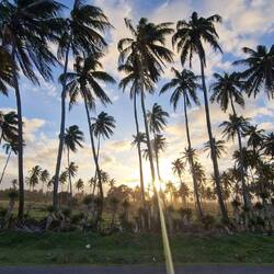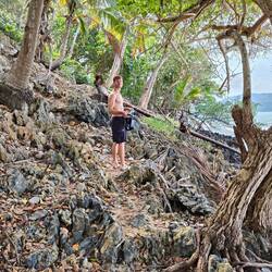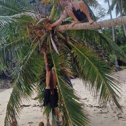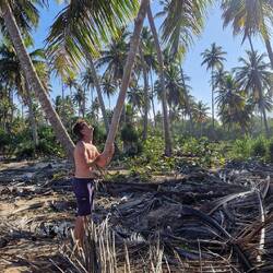- wir verirren uns bei einer eigentlich nur 30 min Wanderung. Treffen auf Kokosnuss-Ernte-Arbeiter und Jan darf auch ein paar Kokosnüsse mit der Lanze runter holen.