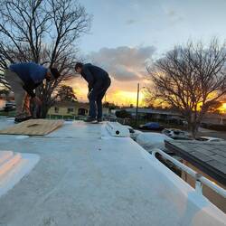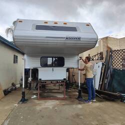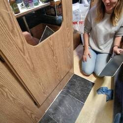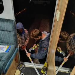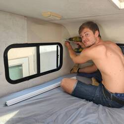 Salome putzt zunächst 2 Tage den Camper und das Auto, Jan installiert die Technik inkl. Starlink für Internet - Danke Elon!