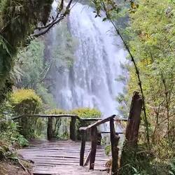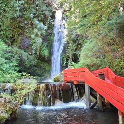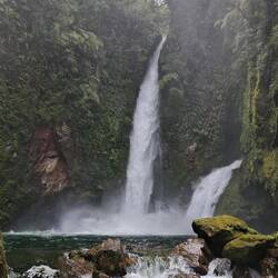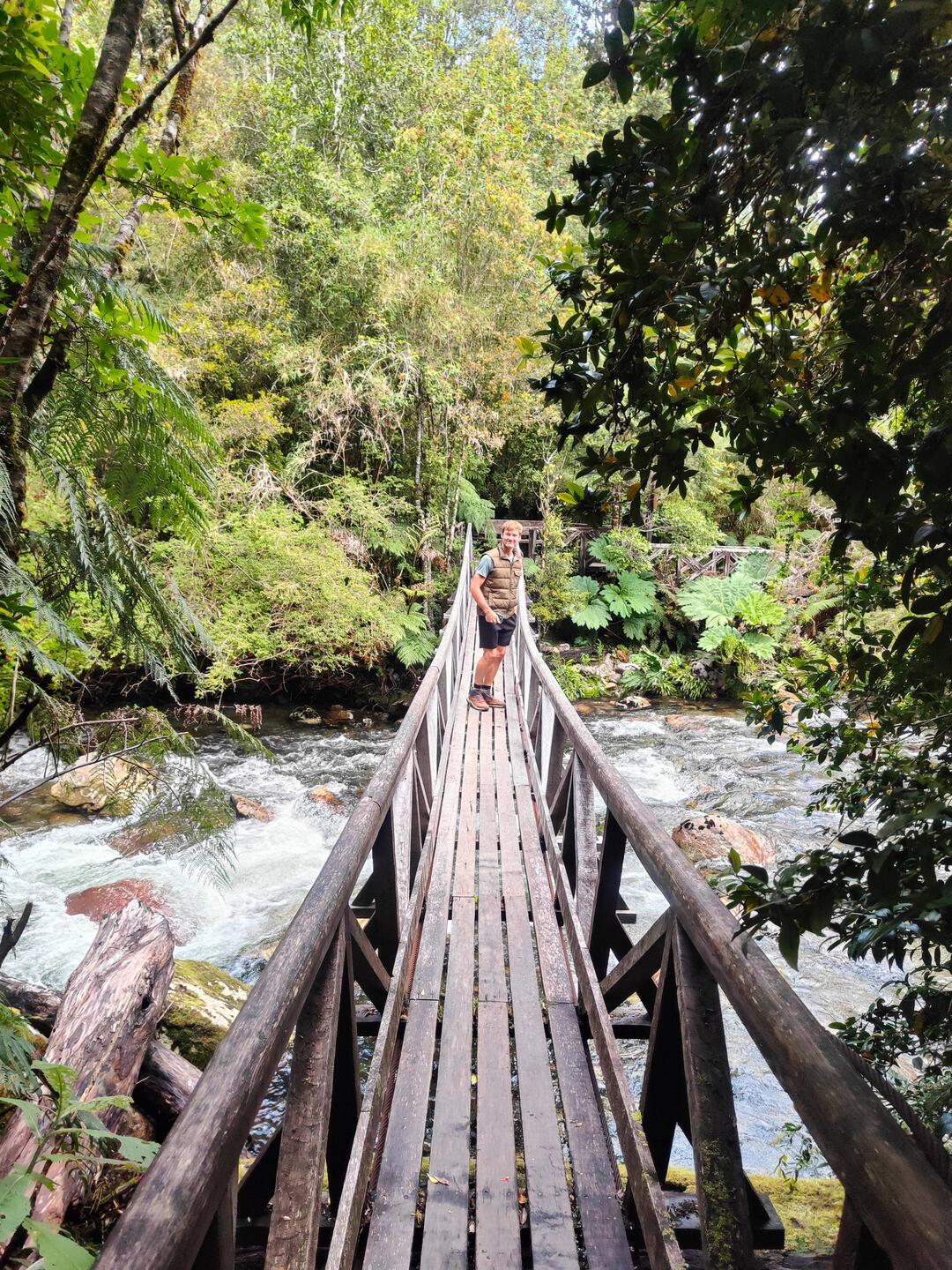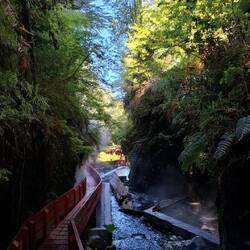 eine gut erhaltener Wanderweg durch einen dicken Wald mit Holzstufen führt zu zwei beeindruckenden Wasserfällen. Direkt danach baden wir in einem natürlichen warmen Pool direkt neben der Strasse. ☺️