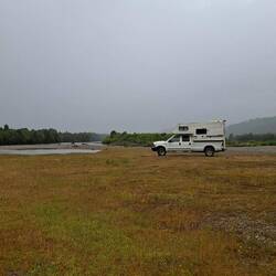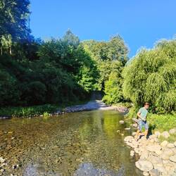 An diesem Ort wurde von vorherigen Reisenden ein 'Kubb' versteckt und in der Reise App iOverlander markiert. Gute Idee, aber leider ist es nicht mehr da... Trotzdem ist es ein schöner Ort am Fluss. ☺️