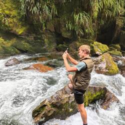 Eine kurze Wanderung führt zu diesem Wasserfall. Aktuell haben wir viele Fahrstunden, da die Strasse eher schlecht ist. Deswegen tut es gut, eine kurze Pause einzulegen.