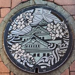 Une fois les douves passées, nous avons pu admirer une nouvelle plaque d'égout des plus artistiques. Derrière elle, nous avons finalement vu le château d'Osaka et avons parcourus la cour du château avec ça splendide vue sur les quartiers avoisinants. Durant notre tour, nous avons aperçu notre premier neko japonais (un chat)!