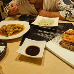 Après quelques verres, il était réellement temps de manger! Nous nous somme donc arrêter pour manger un Yakiniku! C'était délicieux mais nous avions encore un peu faim. Nous nous somme donc arrêté une deuxième fois afin de manger des petits brochettes d'agneau et de poulet, des ravioli au porc et du porc pané à la sauce divine (d'après Chris)!