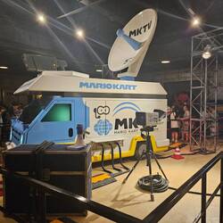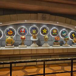 Rien que pendant la queue, nous avons pu admirer toutes les décoration du château de Bowser. Beaucoup d'éléments étaient centré sur lui, mais toute une aile du château avait été aménagée en honneur à Mario Kart, comme les trophées ou bien la camionnette de diffusion MKTV!