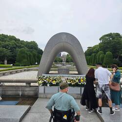Après un bon repas, nous avons repris le bateau afin de rejoindre notre voiture direction Hiroshima! Là bas, nous nous sommes rendu à notre hôtel pour poser nos valises et nous sommes partie en direction du mémorial de la paix! Nous avons commencé par le dôme de Genbaku, un bâtiment qui a en partie résister à la bombe nucléaire larguée par les américains à la fin de la seconde guerre mondiale! C'était vraiment unique et on sentais une sorte de stupéfaction face à ce monument!