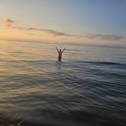 Une fois arrivé en bas des dunes, nous avons été faire trempette! Pour ma part, je n'ai fait que mouiller mes pieds étant donné que je n'avais pas mon costume de bain avec moi mais Chris a fait un bon petit bain!