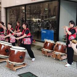 En arrivant à la fête, nous avons acheté une glace traditionnelle japonaise (glace pilée et sirop) avant de parcourir la rue! Nous y avons vue un concert fait par des jeunes du coin ainsi qu'un spectacle avec des tambours japonais! C'était assez cool!