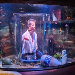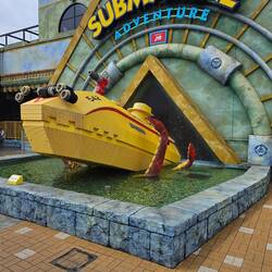 Après quelques photos, nous avons commencé à faire des attractions, notamment la "Submarine Adventure" qui est un petit parcours en sous-marin ou l'on peut apercevoir des poissons! C'était vraiment cool! À la sortie de l'attraction, Chris a même pu se prendre pour un petit Nemo!