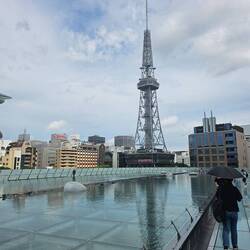 Nous sommes ensuite partis en direction de l'Oasis 21, un complexe avec la particularité d'avoir une grande plate-forme surélevé au dessus du bâtiment! En allant sur cette plate-forme, nous avons eu une belle vue sur la tour radio de Nagoya! Il faut savoir qu'il y a de l'eau sur cette plate-forme! Le but? Rafraîchir l'air au alentours et limiter la chaleur en dessous!