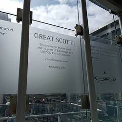 Very soon we were in Edinburgh to wait with about fifty others, all sizes of suitcases in tow, trying to cram into the heaving lift taking everyone up from the platform. The lift says for "disabled and prams", but the queue didn't care about that pushing in front of even a wheelchair!