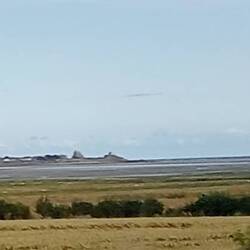 Again as we sped toward the border I kept looking for a sign that we were in Scotland. Here came Berwick so I knew we were close and I couldn't help but feel this letting down of an unconscious guard I keep up as a foreigner in different lands. It is hard to explain but it always happens the letting go of breath, shoulders relaxing down, a few quiet unexpected tears drop from my eyes and I know I'm home! The landscape began to change slightly as the coastline became prominent for a while. Such a stunning horizon to look out on...,a castle comes to view in the distance.