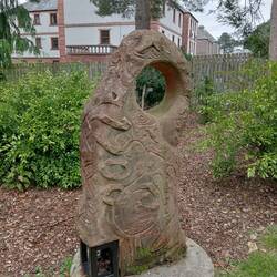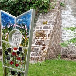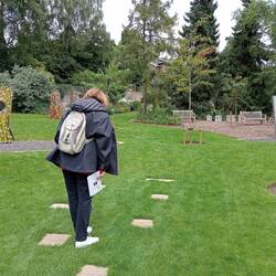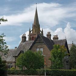 Taking the bus from the high street, I arrived too early to check in to the accommodation, so walked down to a church just across the road. There was a beautifully kept garden and seat just waiting for me. No sooner sitting than a white haired woman wearing blue jeans and tops, handbag and shopping bags on arms came through the gates making her way across the grass to say a curious "hello" head on one side looking down at me. Her smile made me promptly respond with an "hello" right back to her.