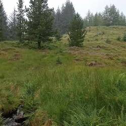 After about a fifth of a mile the track crosses a cattle grid; cross this and after about 200 yards turn right along a small footpath that winds northwards through trees. It roughly parallels the stream for a mile, crossing a gate through a deer fence that leads into an area devoid of any vegetation - the site of an old lead works. Go through another gate on the other side of the cleared area to join a track that runs along the southern bank of the Crom Allt. This track eventually curves to the right to reach a road; turn left to follow the road, passing the By The Way campsite on the left to reach the road near Tyndrum Lower railway station at NN327301.Read more